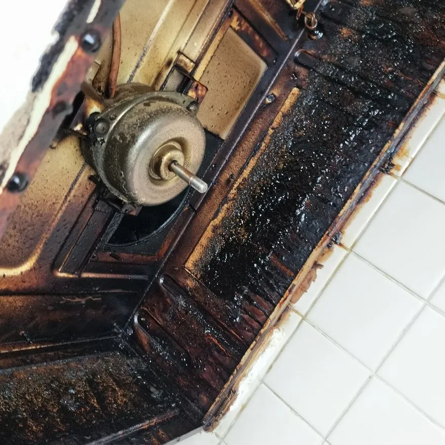 長年手をつけていない換気扇、内部の汚れが蓄積すると電気代や火災リスクにもつながります。